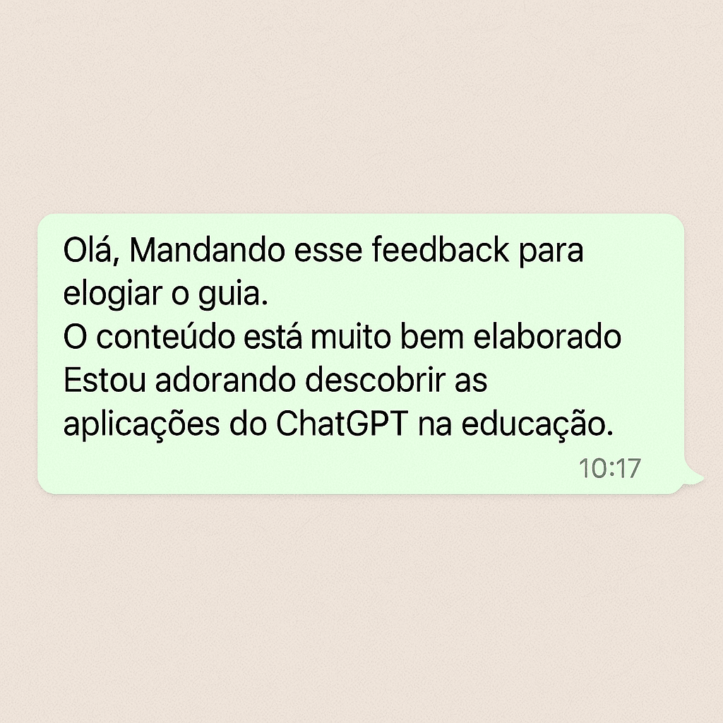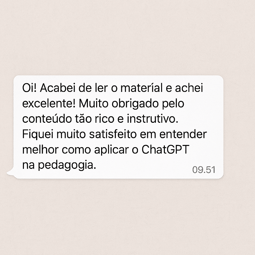 “A Pedagogia do Futuro com ChatGPT” é o guia que mostra como usar a IA para reduzir drasticamente sua carga de trabalho, criar conteúdos completos em minutos e finalmente ter mais tempo, leveza e resultados.
